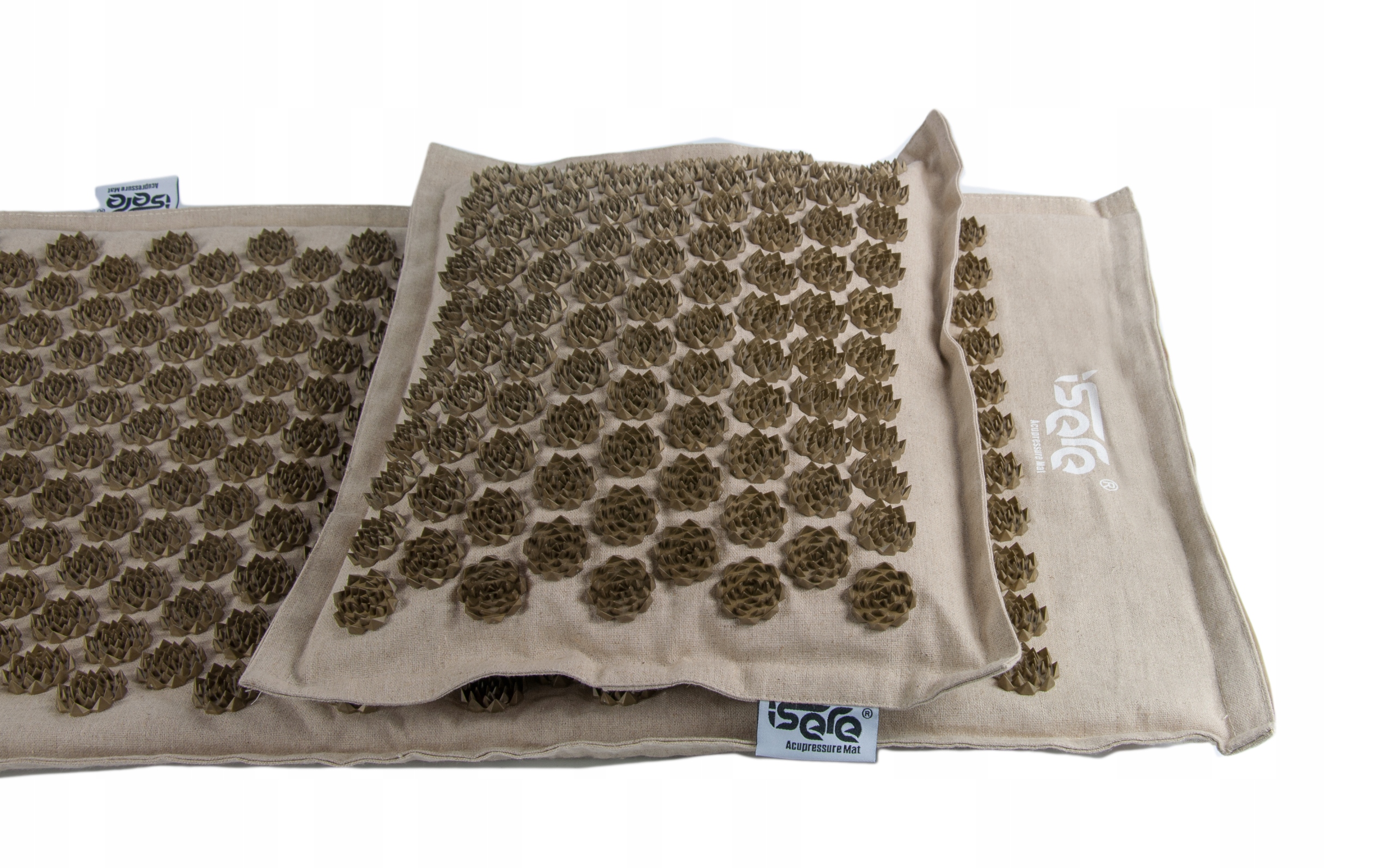 Акупрессурный коврик польского бренда ISERE имеет 6409 шипов, расположенных на коврике и 2755 шипов на подушке. Эта сумма отличает нашу модель коврика от других, представленных на рынке. Коврик обладает противоаллергическими свойствами. Льняной чехол имеет розетки с шипами и полностью снимается, поэтому коврик можно легко содержать в чистоте. Коврик оснащен удобной и воздушной льняной сумкой для переноски, благодаря которой коврик не зачерствеет и останется свежим, а его легко можно спрятать или взять с собой на улицу.