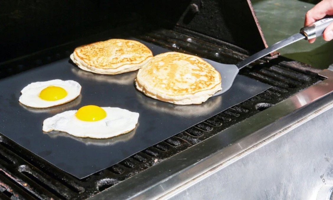 ✅ Антипригарное покрытие: Тефлоновый коврик обеспечивает превосходную поверхность для гриля, которая предотвращает прилипание продуктов к решетке. Благодаря этому вы можете легко переворачивать и вынимать продукты, не беспокоясь о том, что они прилипнут или развалятся.