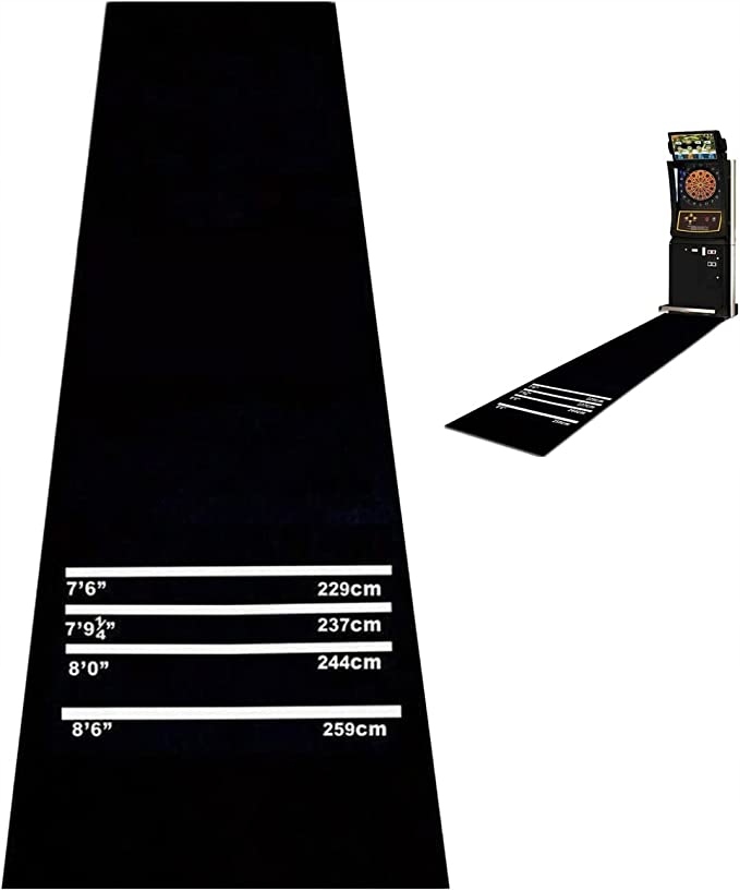 - Независимо от того, играете ли вы в дартс профессионально или просто в качестве хобби, с нашим ковриком для дартса у вас всегда будет под рукой официальная игровая дистанция 237 см от мишени без раздражающих следов клея.