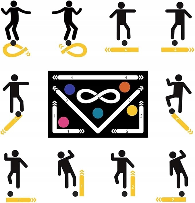 Вы хотите тренироваться в футболе, но вам не хватает поля или последовательности? Этот тренировочный коврик ФУТБОЛЬНЫЙ КОВР размером 60×90 см идеально подходит для гостиной или балкона. Широкие линии облегчают управление мячом новичкам. Он содержит более 70 целевых тренировочных решений (постоянно обновляемых), от дриблинга и тренировки слабой стороны до баланса и концентрации. Начните эффективно тренироваться дома, без необходимости выходить на поле. Идеально подходит как для профессиональных игроков, оттачивающих свое мастерство, так и для новичков, которые только начинают!