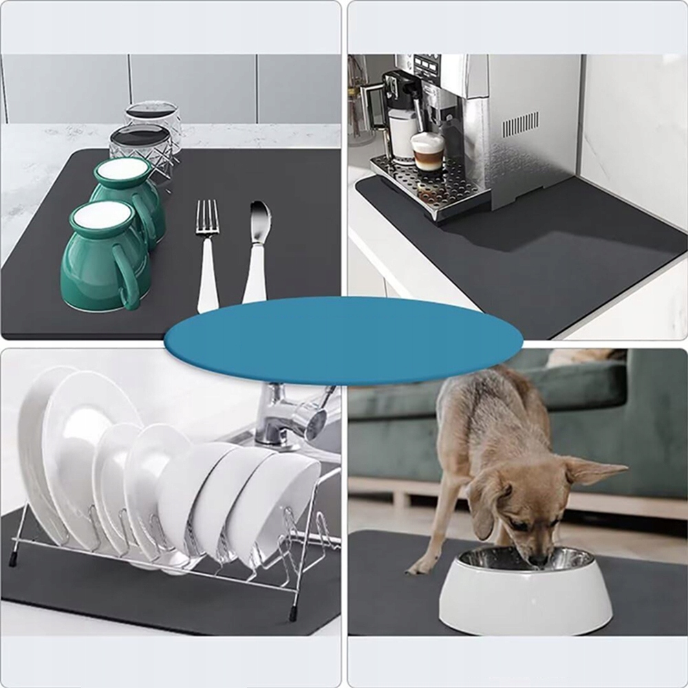 Удобный размер:Наш коврик для сушки посуды имеет размеры 60 x 40 см, что обеспечивает большую поверхность для сушки многих предметов, таких как кофемашины, сушилки для посуды, большие тарелки, стаканы, банки и небольшие кастрюли. Он универсален и может быть размещен, среди прочего, на кухонной раковине, столешнице или под кофемашиной. Кроме того, вы можете легко разрезать коврик до нужного размера. Обратите внимание, что резиновая сторона находится внизу для оптимального сцепления и устойчивости.