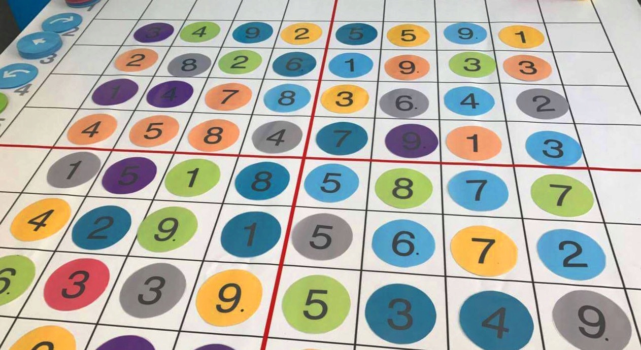 Двусторонний обучающий коврик размером 150 х 150 см, который будет использоваться в дошкольном и дошкольном образовании.