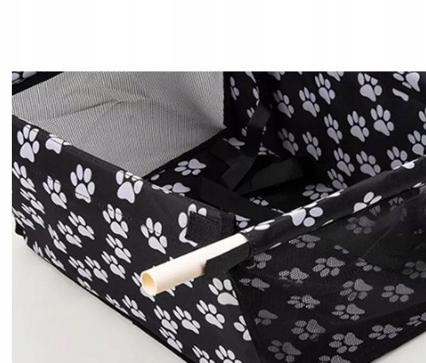 Черная модель, как и декорированная, имеет специально усиленные боковины трубками из ПВХ, которые придают жесткость собачьему сидению. Это делает невозможным складывание во время движения.