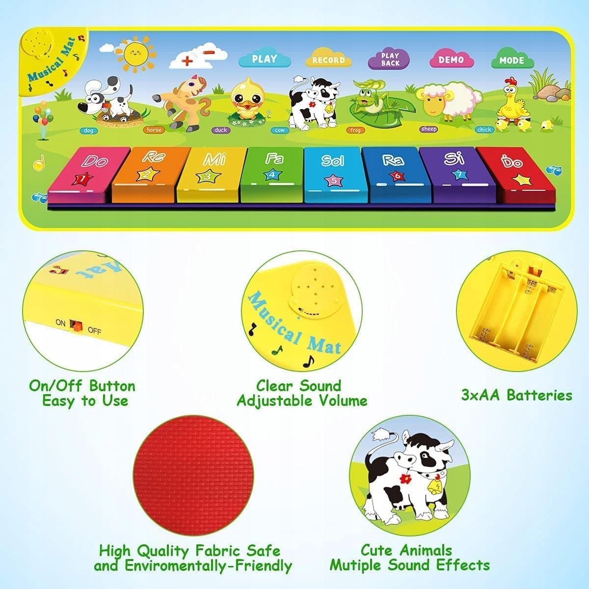 Коврик для фортепиано для детей в возрасте 1/2/3/4/5 лет, это также отличный подарок на вечеринку, день рождения, Рождество и другие праздники. Наслаждайтесь весельем и танцами с друзьями и семьей с помощью сенсорного игрового коврика для дома и улицы.