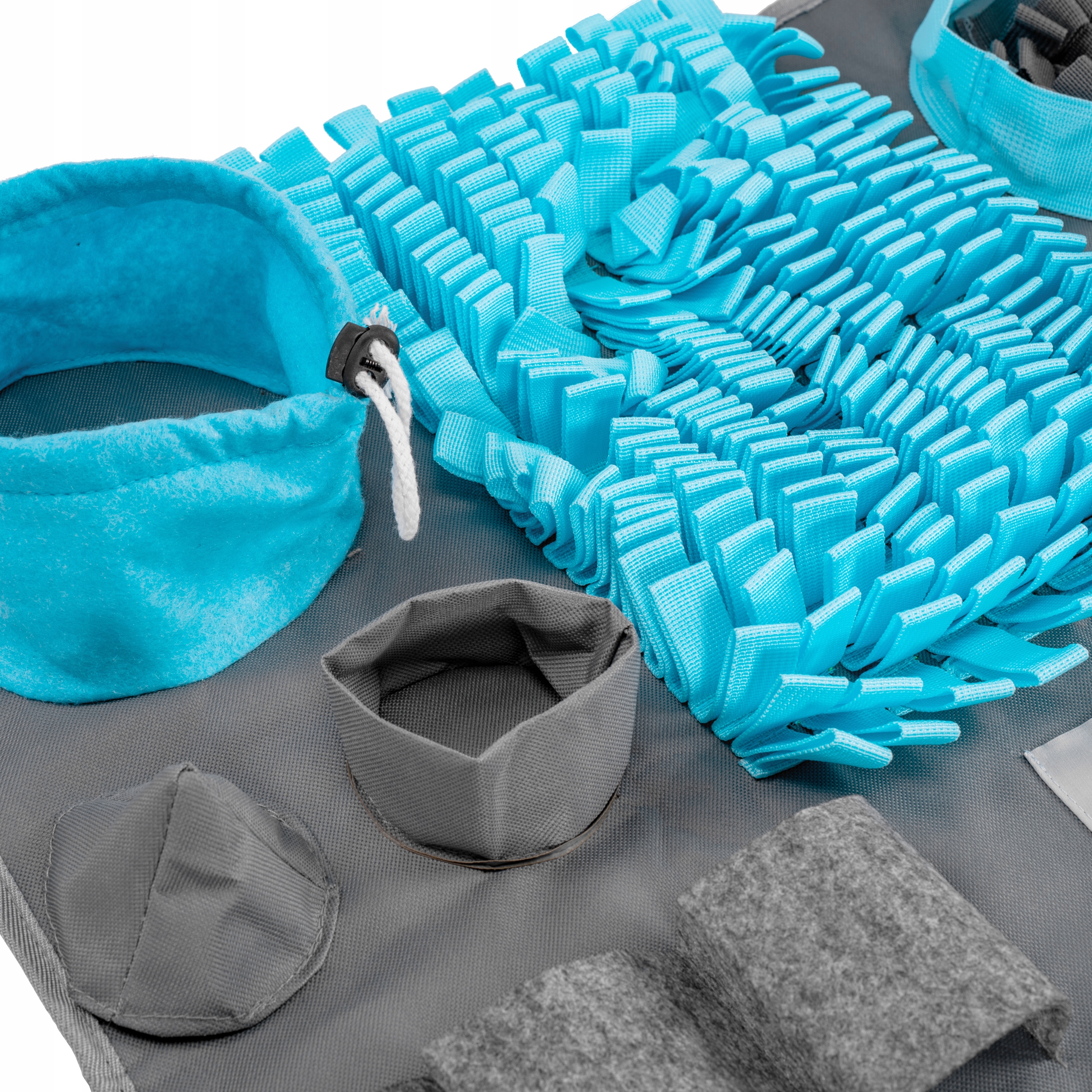 Удовлетворение обоняния: Наш обонятельный коврик был разработан специально для стимулирования обоняния вашей собаки. Благодаря своей конструкции и расположению карманов ваша собака сможет отслеживать и нюхать лакомства, что обеспечит ей интеллектуальную стимуляцию.