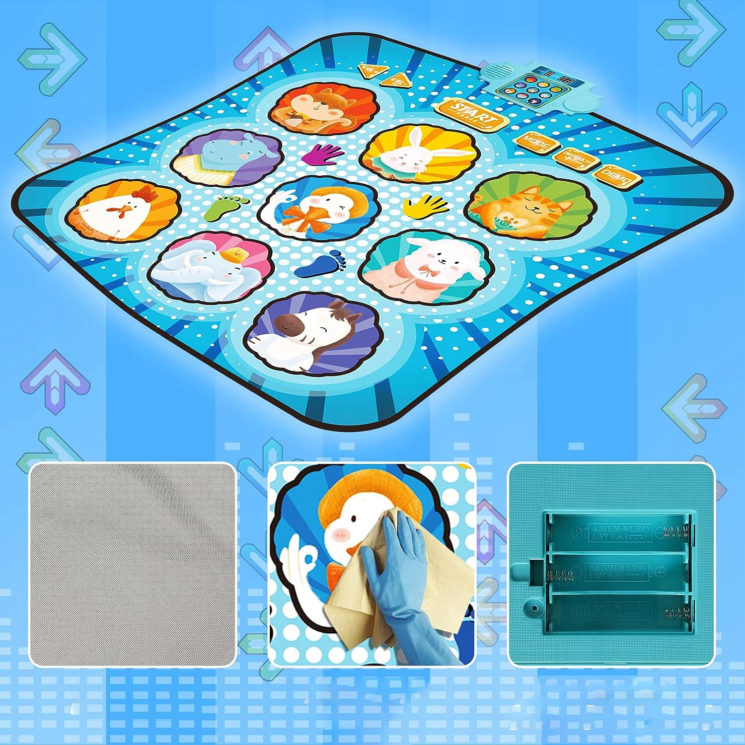 - Детский коврик для танцевальной музыки имеет 8 встроенные музыкальные композиции, 4 режима игры, 8 уровней, 3 уровня сложности и регулировка громкости.