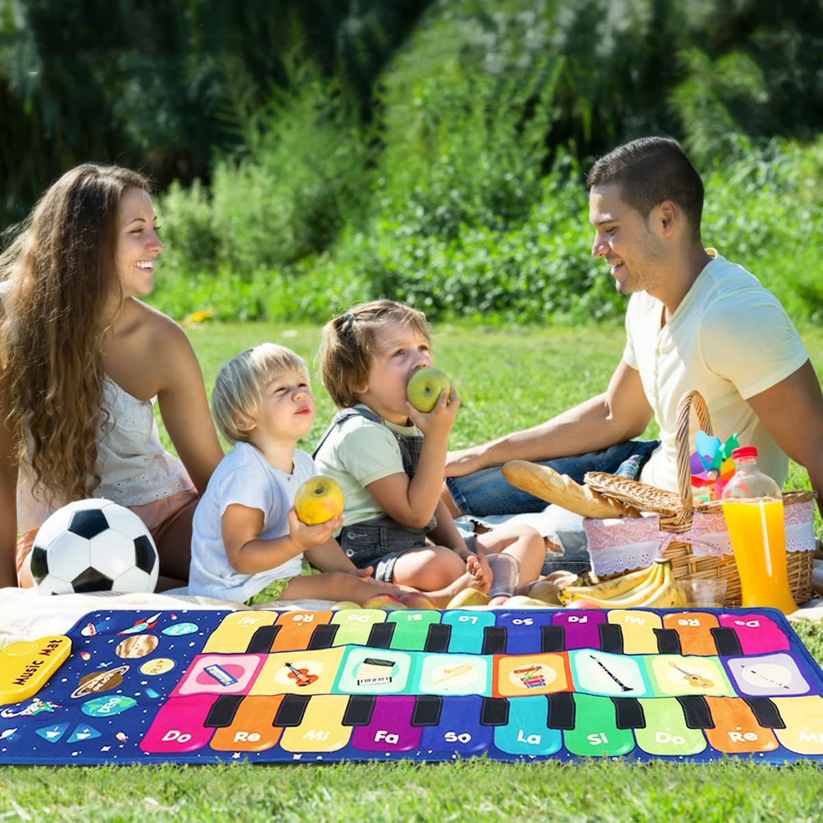 🎁【Удобен для детей и портативен】 Музыкальный коврик изготовлен из мягкого и сверхпрочного нетканого материала без запаха, который позволяет малышам комфортно и безопасно прикасаться, ползать и танцевать. Кроме того, игровой коврик складывается, что позволяет сэкономить много места при хранении, его легко переносить и легко чистить. Противоскользящая конструкция безопаснее!