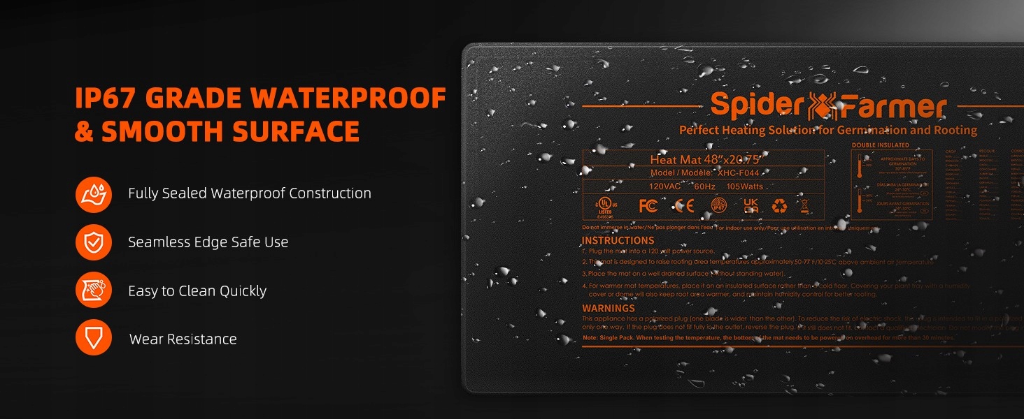 Spider Farmer 121x52 см Водонепроницаемая грелка с контроллером Гидропонный нагревательный коврик для проращивания, внутреннего садоводства, теплицы