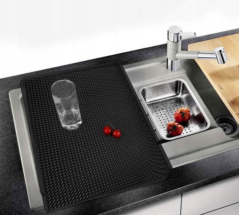- БЫСТРАЯ СУШКА - высокие выступы обеспечивают максимальную вентиляцию и позволяют посуде очень быстро высохнуть. Постирать коврик не проблема! Мы можем мыть его под проточной водой или положить в посудомоечную машину. Его использование также предотвращает повреждение раковины и появление царапин на посуде.