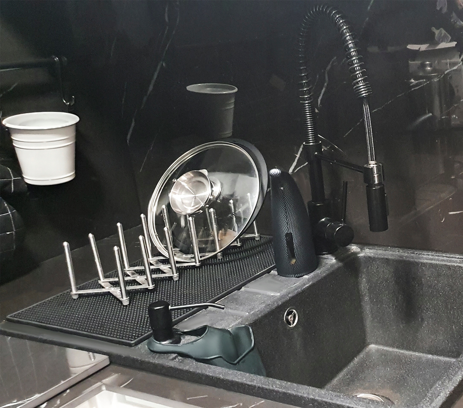 Помыть – не проблема! Мы можем мыть его под проточной водой или помещать в посудомоечную машину. Использование коврика также предотвращает повреждение раковины и царапин на посуде.
