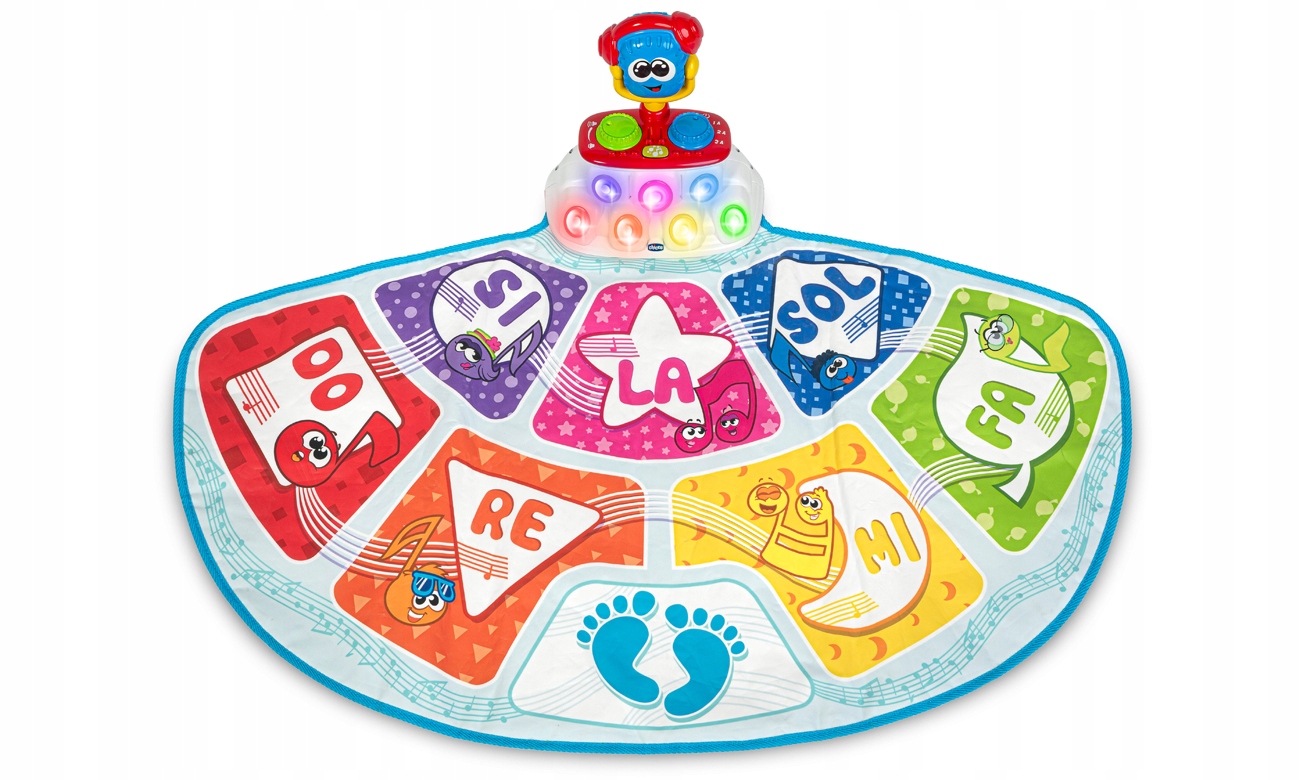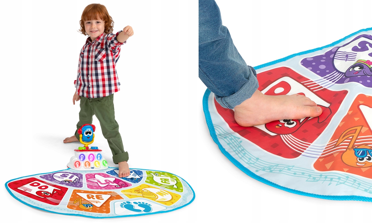 Откройте для себя мир музыки и чувство ритма посредством игры благодаря танцевальному коврику. Chicco представляет первый говорящий музыкальный коврик, который дает возможность постепенно изучать музыку. Главный герой DJ Mic также поет, разговаривает и танцует: следите за тем, что он говорит и как он двигается, чтобы развить навыки распознавания звуков, чувство ритма и, наконец, знание звуков и названий нот.