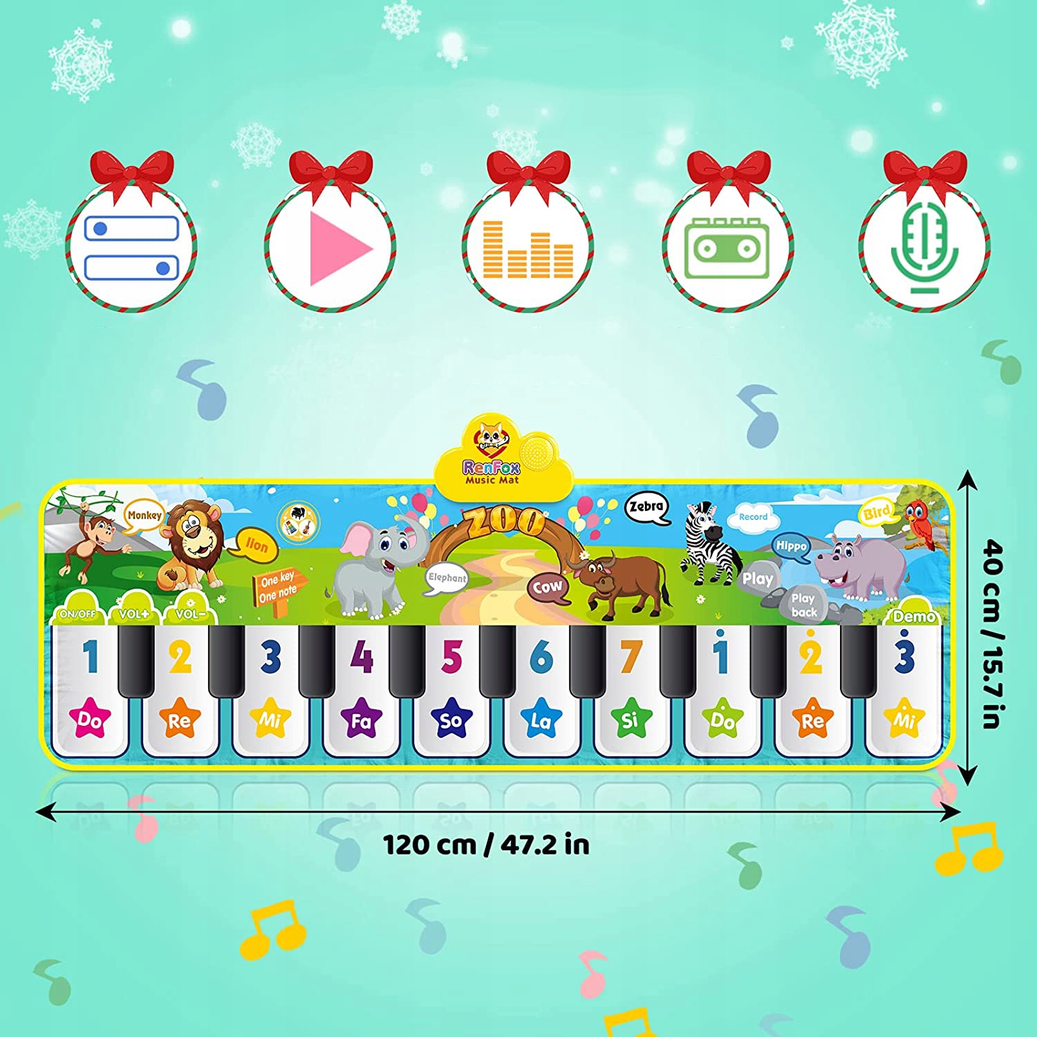 💃Дети могут не только слушать музыку, но и создавать свои мелодии и записывать их. Наш коврик для фортепиано имеет 8 функциональных клавиш, таких как запись, воспроизведение, одна клавиша, одна нота и другие. Это позволяет малышам открывать для себя множество звуковых комбинаций и стимулирует их творческие способности.