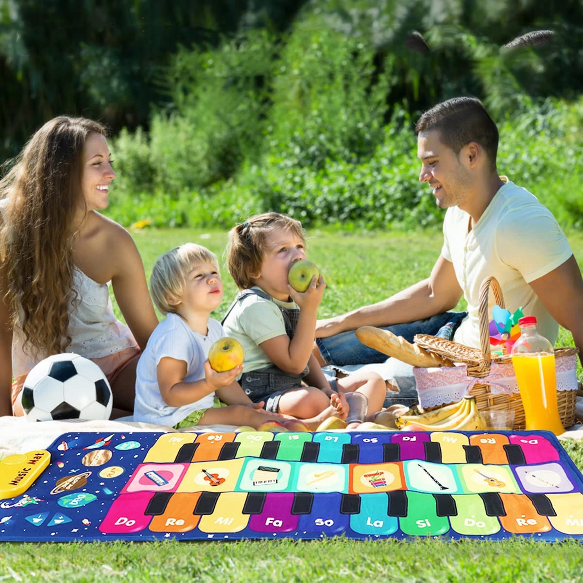 🎹 Музыкальный коврик изготовлен из мягкого и сверхпрочного нетканого материала без запаха, без острых углов, позволяет маленьким детям прикасаться, ползать комфортно и безопасно и танцевать. Кроме того, игровой коврик складывается, что экономит много места для хранения, его легко переносить и легко чистить. Противоскользящая конструкция безопаснее!