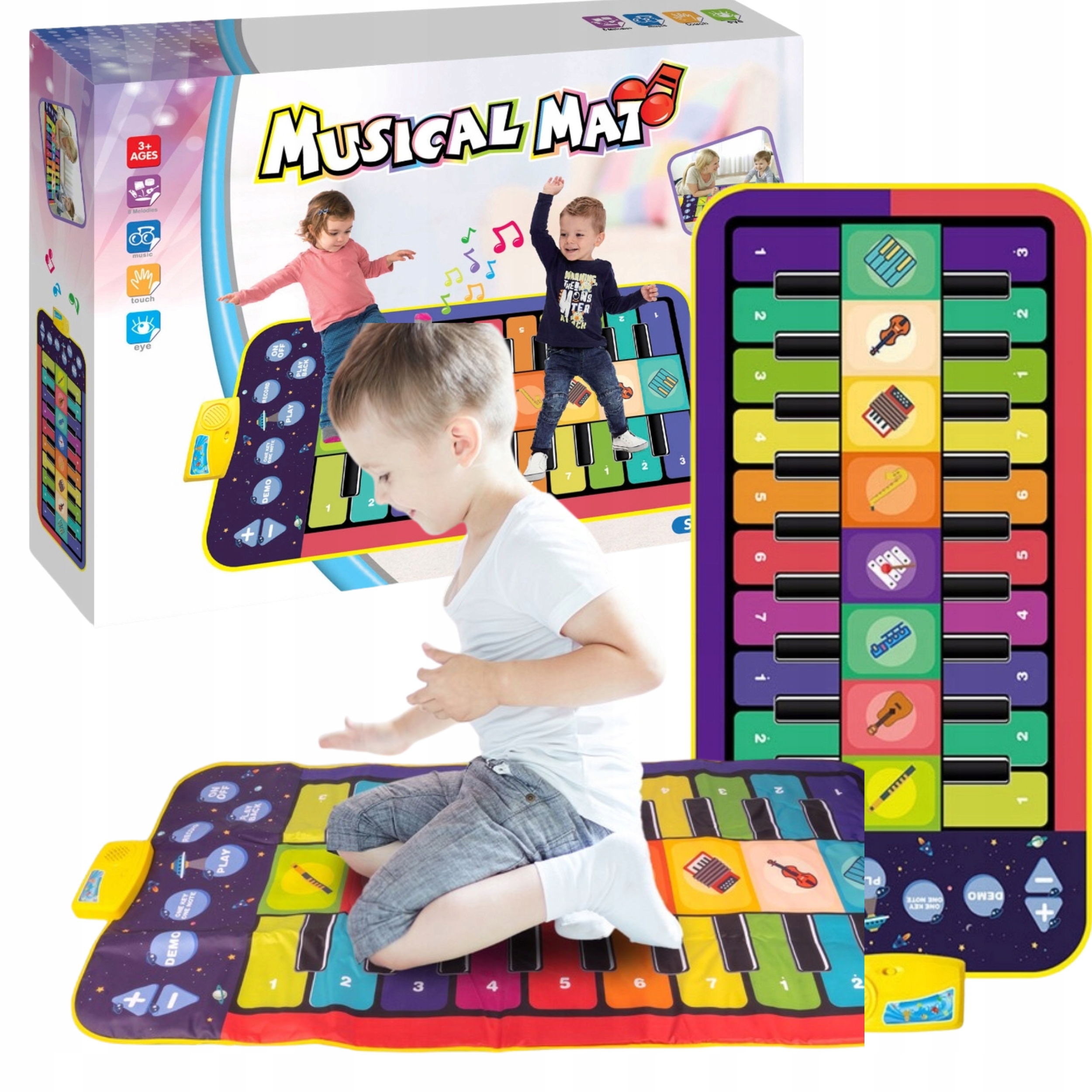 Представьте игру игрушку, которая в то же время преподает, развлекает и поощряет движение - это музыкальный образовательный коврик b> для детей! Огромный, красочный, полный звуков и функций, которые будут вызвать воображение и творчество малыша. Каждый шаг - это новая нота, новый инструмент и ... новое приключение!