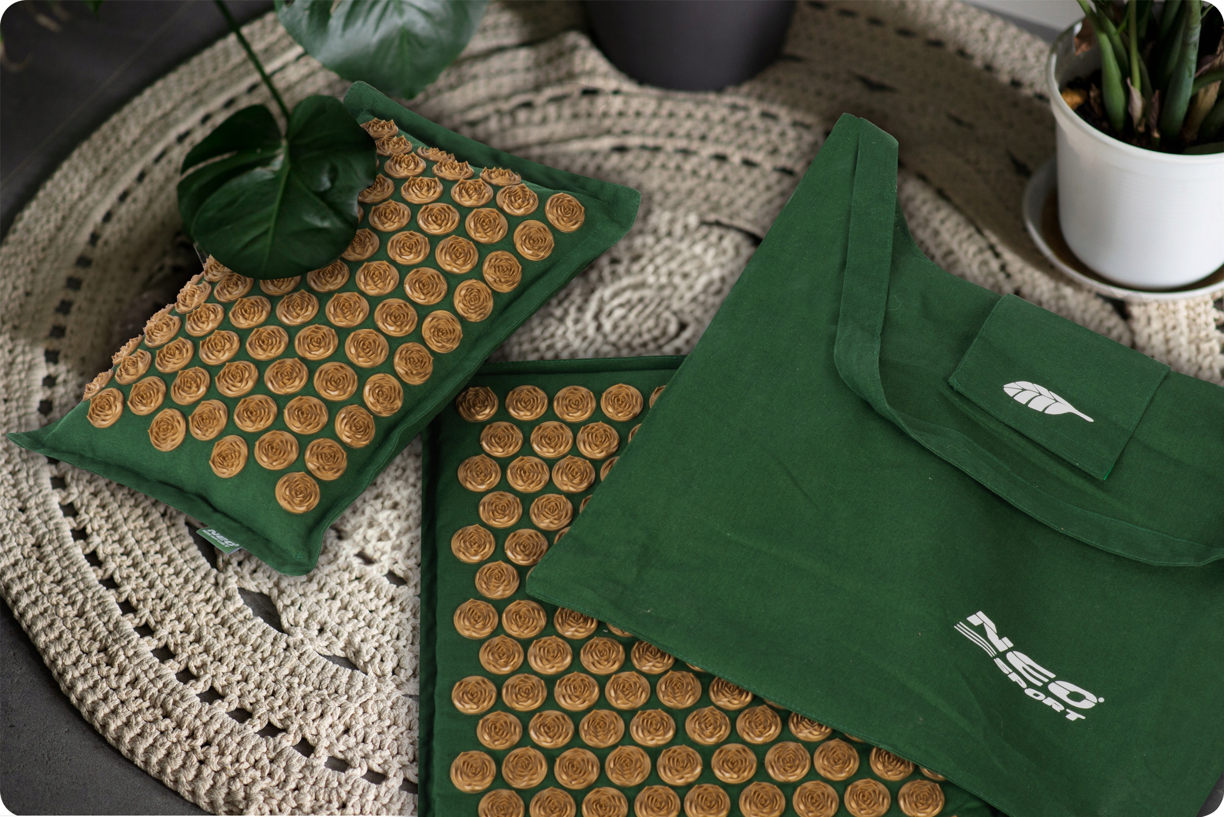 Килимок для акупресури з крапками + ПОДУШКА + СУМКА. КОМПЛЕКТ КОКОСОВОЇ БІЛИЗНИ ПРЕМІУМ