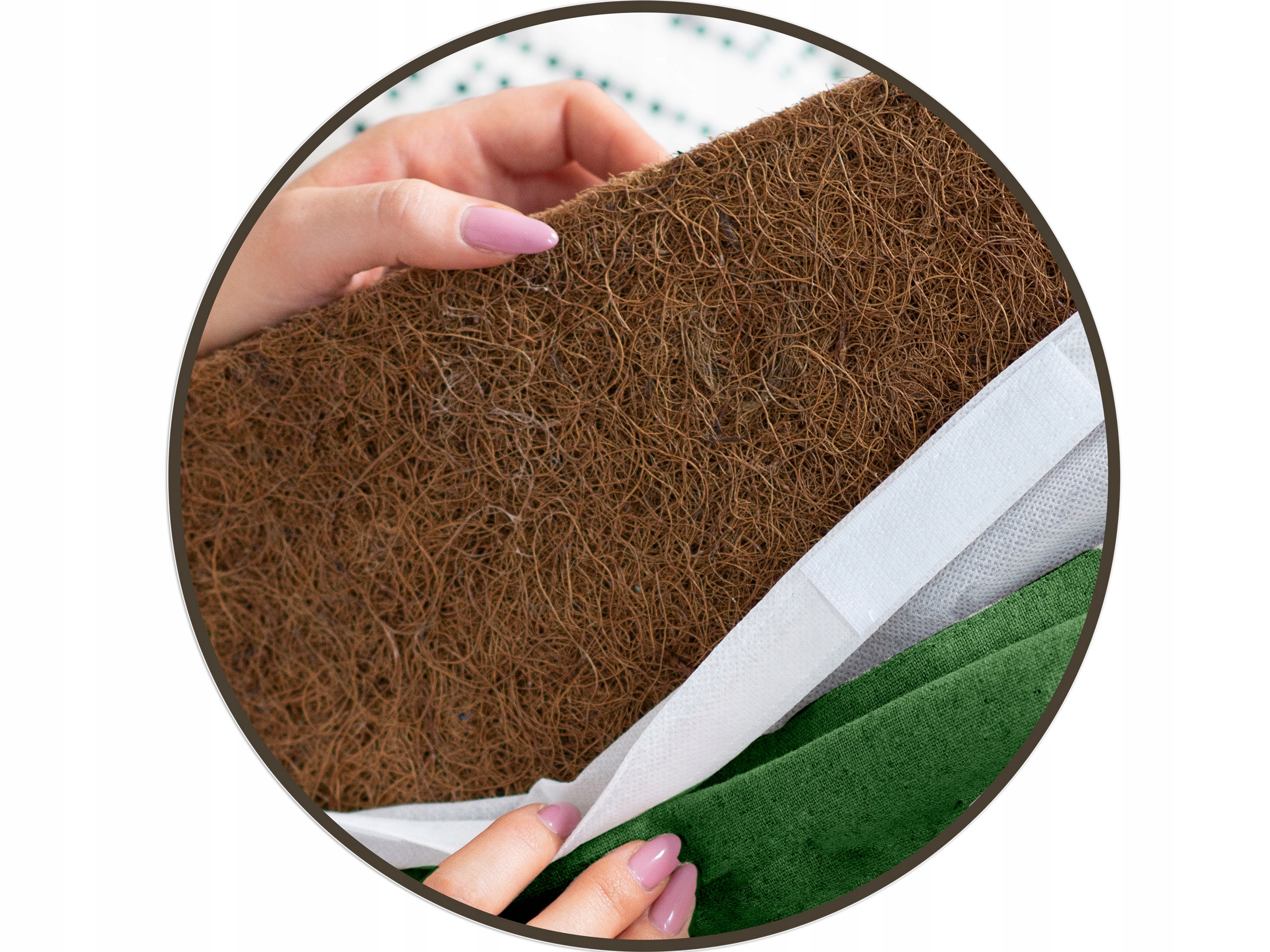 - Натуральное кокосовое волокно, в отличие от других наполнителей, гигиенично и полезно для здоровья. Он дополнительно защищен пропиткой, которая увеличивает долговечность коврика и обеспечивает еще большую гигиеничность.