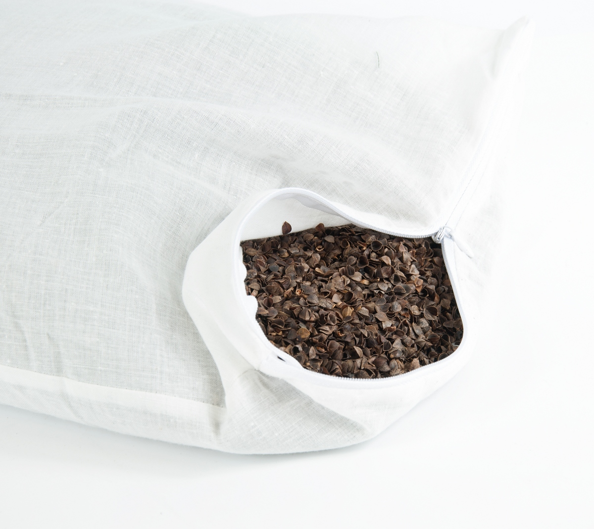 • Подушка имеет льняной чехол, наполненный натуральной гречкой.