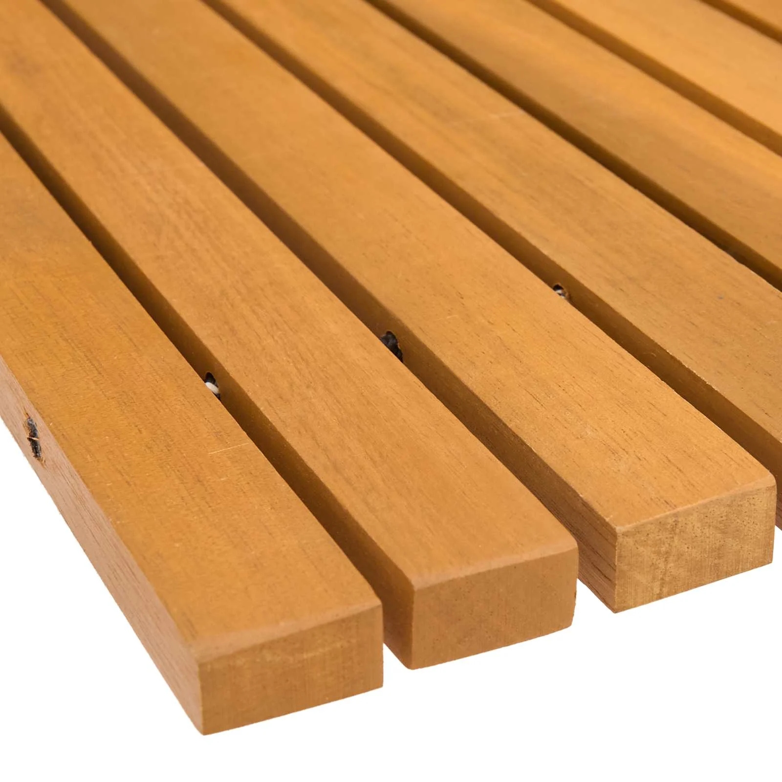- Деревянная конструкция: Этот коврик для ванной, изготовленный из дерева, прочен и имеет естественный вид. Промасленная отделка подчеркивает цвет и защищает от влаги, поэтому коврик сохраняет свое очарование в течение длительного времени.