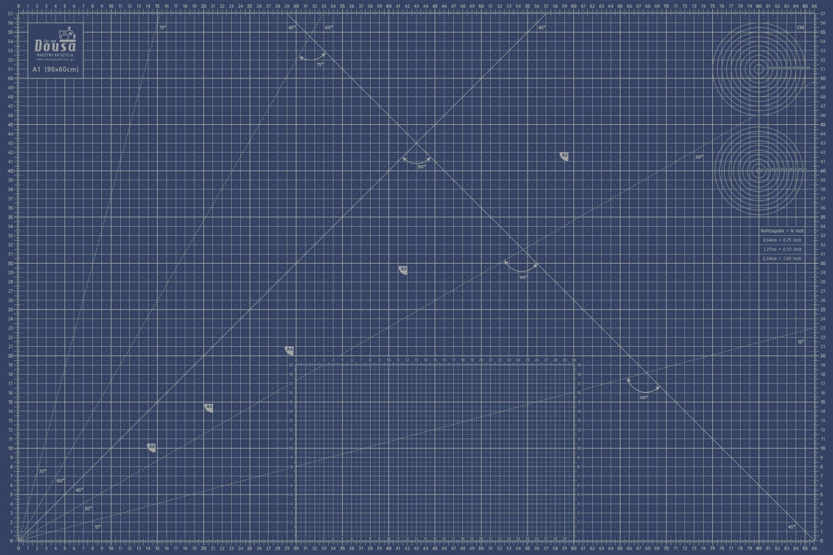 Коврик имеет метрическую и дюймовую шкалу.
