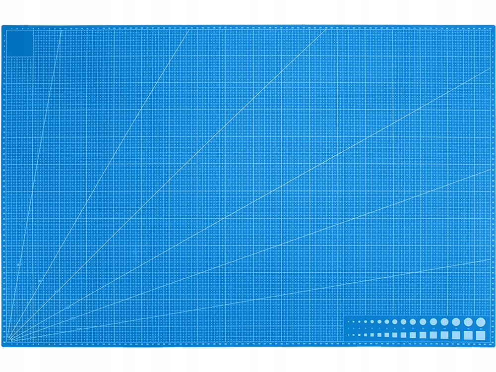 После резки он остается гладким. С обеих сторон имеет слой, на котором напечатана сантиметровая шкала по вертикали и горизонтали, имеются отмеченные углы, транспортиры. , параллельные линии и фигуры.