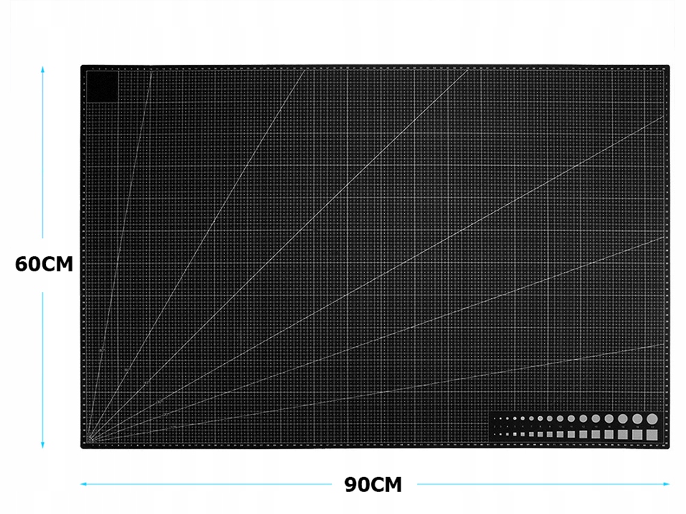 Самовосстанавливающийся коврик для резки изготовлен из специального материала, который частично заживляет при резке лезвием. После резки он по-прежнему гладкий. С обеих сторон он имеет слой, на котором напечатана сантиметровая шкала по вертикали и горизонтали, с углами, транспортирами, параллельными линиями и фигурами. отмечено.