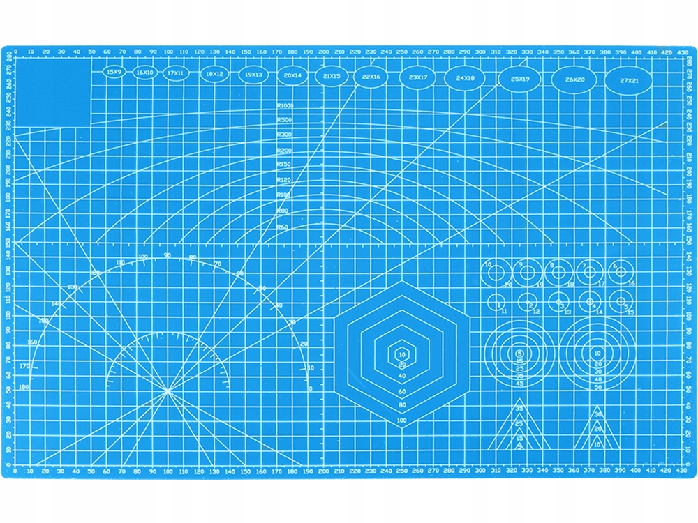 Самовосстанавливающийся коврик для резки изготовлен из специального материала, который частично заживляет при резке лезвием. После резки он по-прежнему гладкий. С обеих сторон он имеет слой, на котором напечатана сантиметровая шкала по вертикали и горизонтали, с углами, транспортирами, параллельными линиями и фигурами. отмечено.
