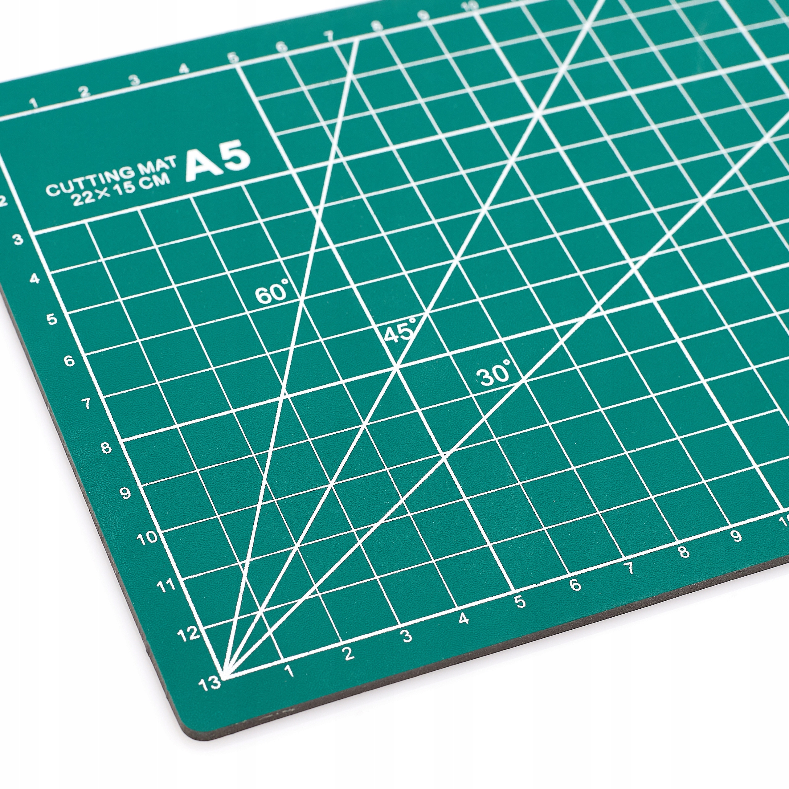 Коврик изготовлен из специального материала, обладающего самовосстанавливающимися свойствами – он частично регенерирует после разрезания лезвием. После резки коврик остается гладким. Коврик двусторонний - на нем напечатана шкала, вспомогательные линии и фигуры, полезные в работе, каждая сторона имеет свой принт. Коврик идеально подходит в качестве подкладки под рабочий стол или письменный стол, его можно использовать во время моделирования или работы в офисе. Коврик можно разрезать скальпелем, дисковым ножом или сегментным ножом.