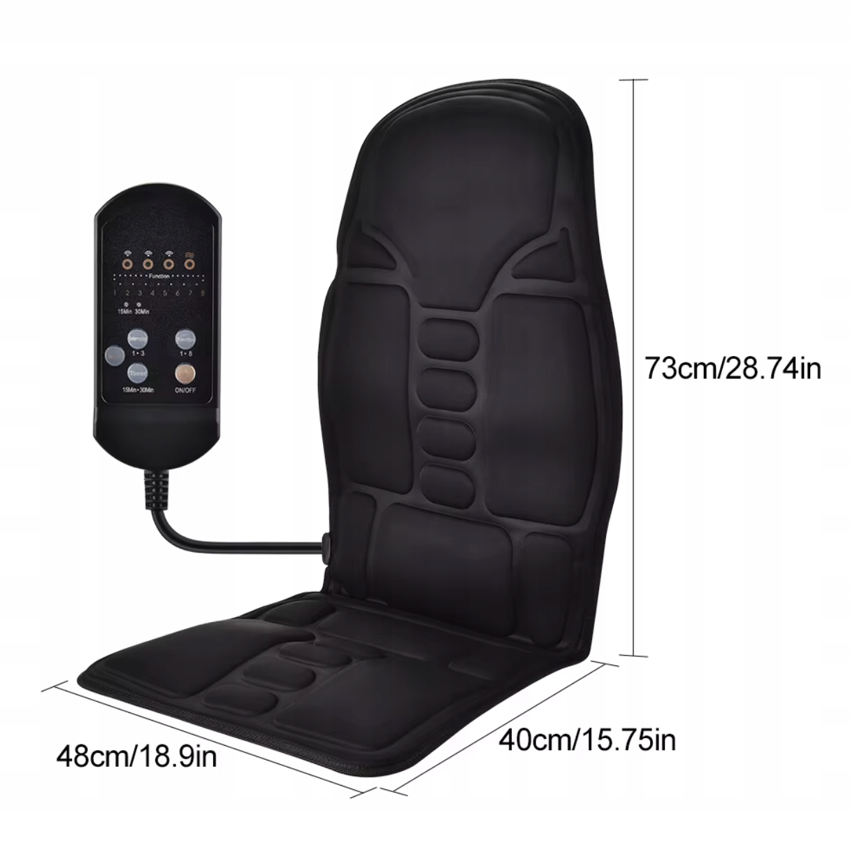 - Функции дистанционного управления:8 режимов работы, 3 режима интенсивности, таймер (15/30 минут), обогрев (подогрев сиденья)