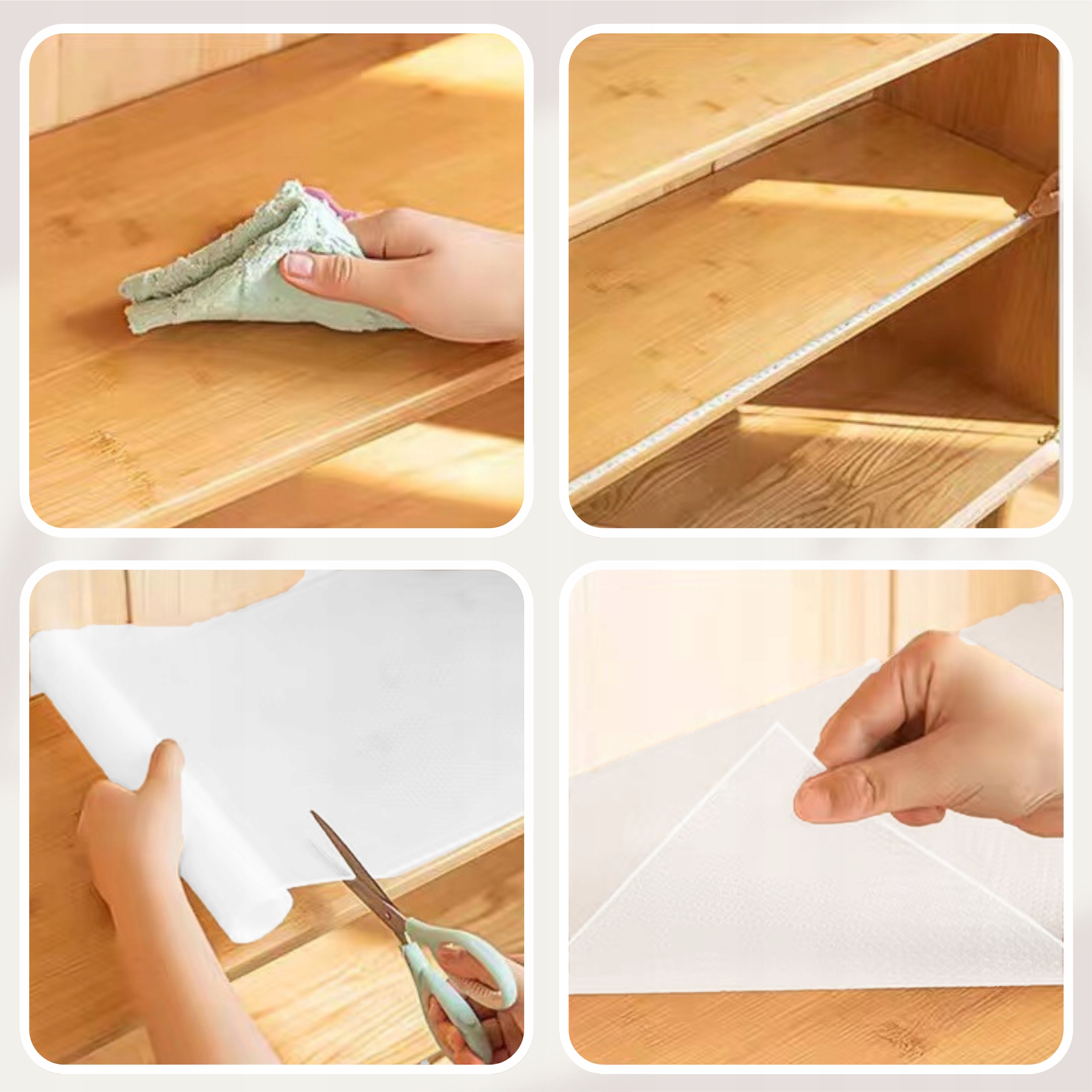 Стандартные размеры коврика составляют 300 см х 50 см, но его можно легко разрезать до любого измерения, чтобы идеально соответствовать любому ящику или шкафу