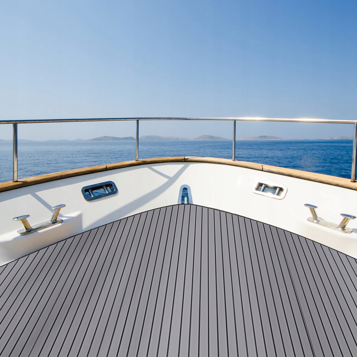 -Тик коричневый вместо черного и может быть легко режется, чтобы соответствовать практически любым поверхностям лодки, где требуется сопротивление скольжению или защита поверхности лодки.