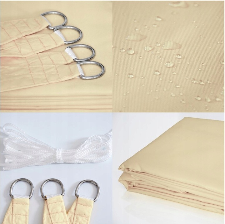 САДОВЫЙ СОЛНЕЧНЫЙ ПАРУС 3,6х3,6м ПРЯМОУГОЛЬНЫЙ БЕЖЕВЫЙ ВОДОНЕПРОНИЦАЕМЫЙ