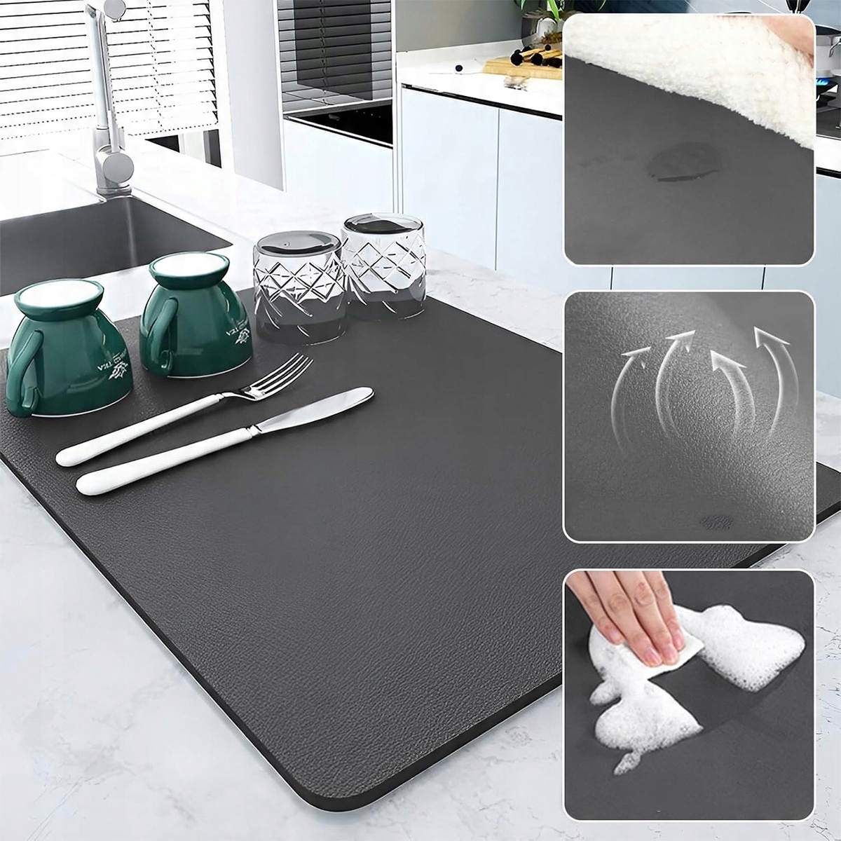 ✨Коврик для слива посуды, подставка под кофемашину 40х50см, поддон с грязеотталкивающей резиновой подошвой, поддон под кухонную мойку, кофемашина (тёмно-серый)✨