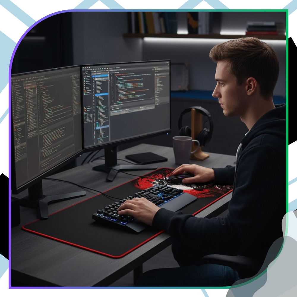 ✅ Противоскользящее дно эффективно предотвращает смещение коврика даже при резких движениях. Высококачественные синтетические волокна и тщательно прошитые края делают коврик для клавиатуры и мыши прочным, устойчивым к истиранию и надолго сохраняют эстетичный внешний вид. Дополнительным преимуществом является легкая очистка, что позволяет быстро обновить поверхность после ежедневного использования.