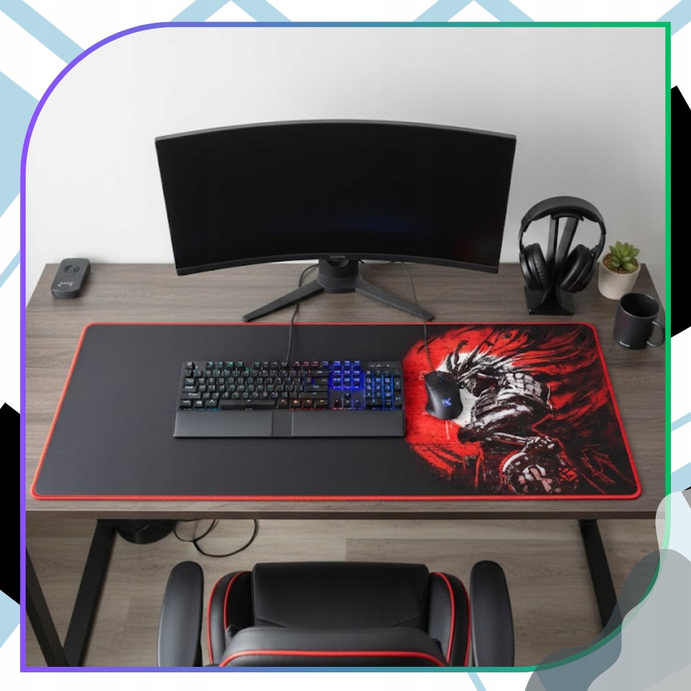 ✅ Большой игровой коврик для мыши и клавиатуры 90 × 40 см в красном и черном цветах — идеальное решение для геймеров и людей, работающих за компьютером, которые ожидают максимального комфорта, точности и выразительного стиля. Динамичный контрастный принт придает компьютерной станции современный агрессивный характер и идеально сочетается с игровым оборудованием. Это идеальный выбор для домашнего стола, офиса или комнаты подростка.