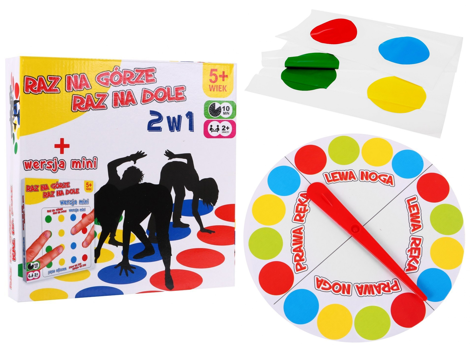 Основной задачей будет сохранение равновесия, стоя на руках и ногах на разноцветных полях коврика. Вопреки видимости, в тесной компании других игроков это не так-то просто! Судья крутит стрелку и указывает цвет, на который нужно переместить ногу или руку.
