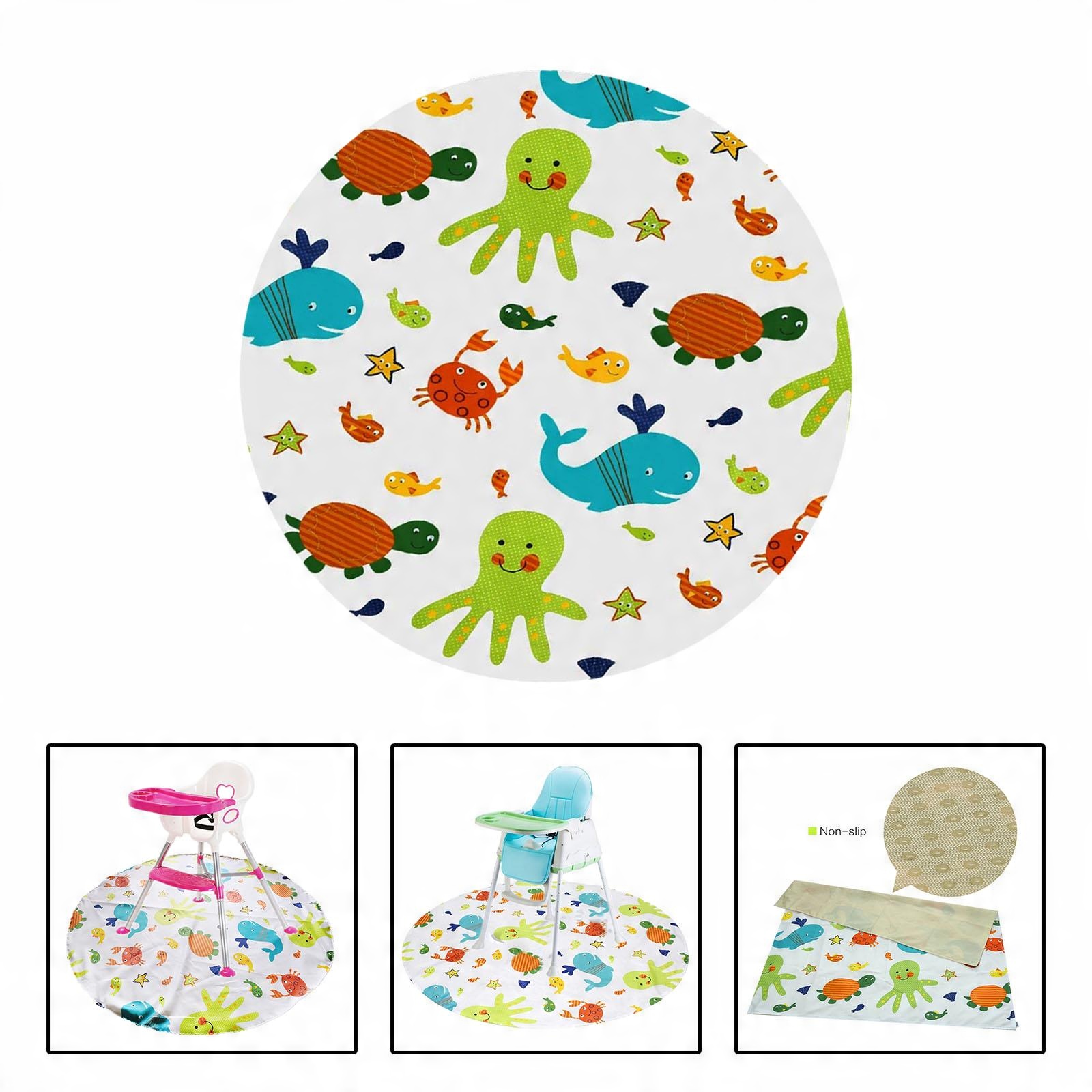 КОВАР ПОД ДЕТСКИМ СТУЛЬЯМИ: Дети неизбежно будут разбегаться повсюду во время еды, делая пол грязным, и его будет трудно убрать! Использование коврика для обеденного стула может эффективно решить эту проблему!