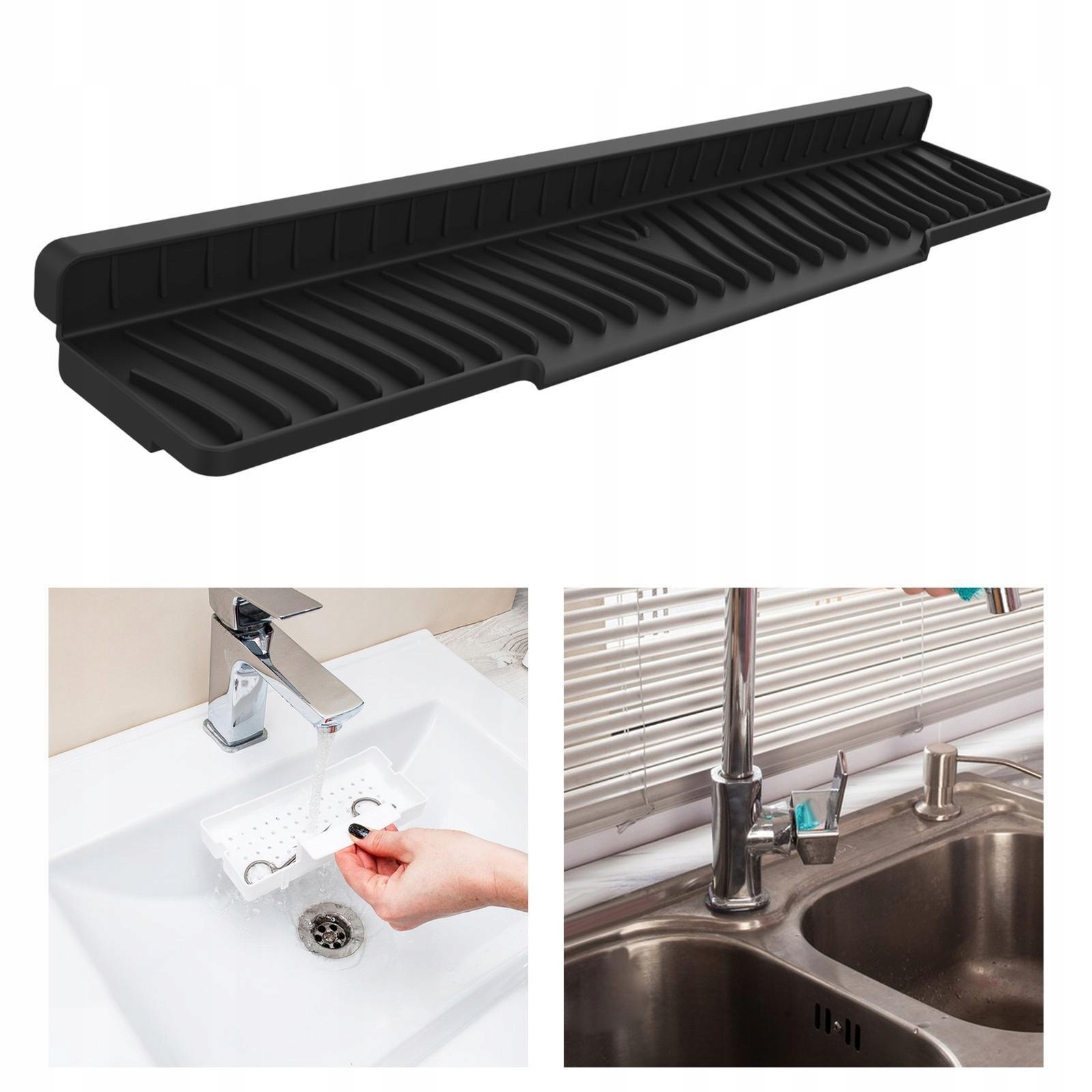 Коврик размером 58 x 12,5 см идеально подходит для большинства раковин и столешниц.
