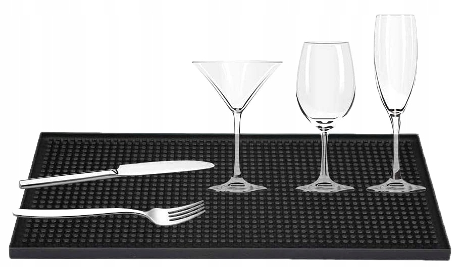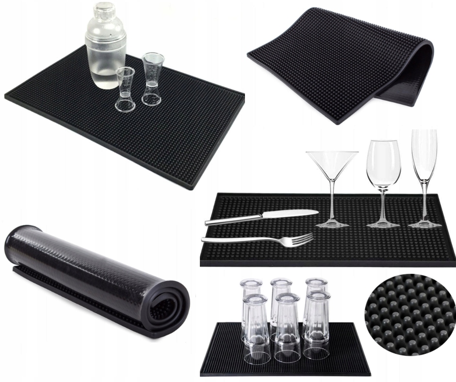 Решение — коврик для бармена. Изготовлен из противоскользящего материала, благодаря которому ваши очки будут устойчивы. Плотно расположенные выступы собирают пролитые напитки, которые потом можно легко удалить.