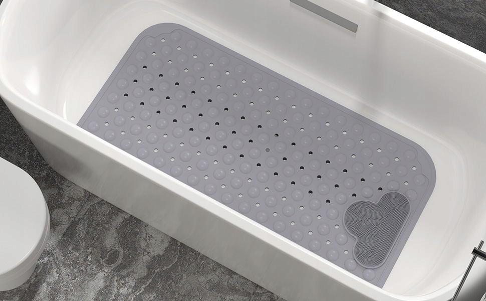 - Коврик для ванной премиум-класса размером 16 x 28 дюймов покрыт множеством прочных присосок, которые прочно прилегают к ванне. и пол в ванне или душевой кабине.