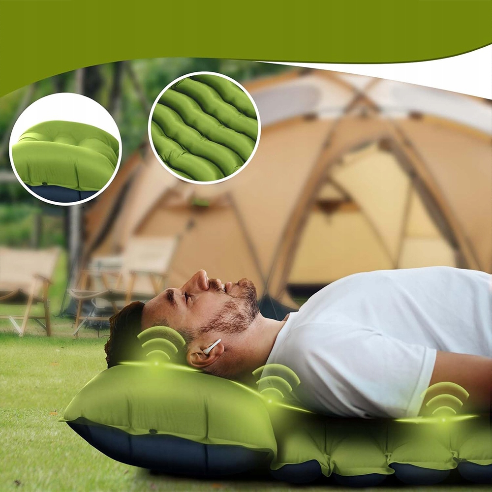 Этот автоматический надувной спальный коврик обеспечивает много места и оснащен инновационными подушками безопасности и встроенными подушками, которые снимают нагрузку на спину и шею и обеспечивают максимальный комфорт и тепло во время сна. Кемпинговые матрасы хорошо поддерживают вас после сдувания неровностей местности и мелких камней. Конструкция воздушной подушки Strip и подушка омни-типа предназначены для снятия нагрузки на спину и шею, поэтому вы можете свободно регулировать баланс и комфорт своего тела.