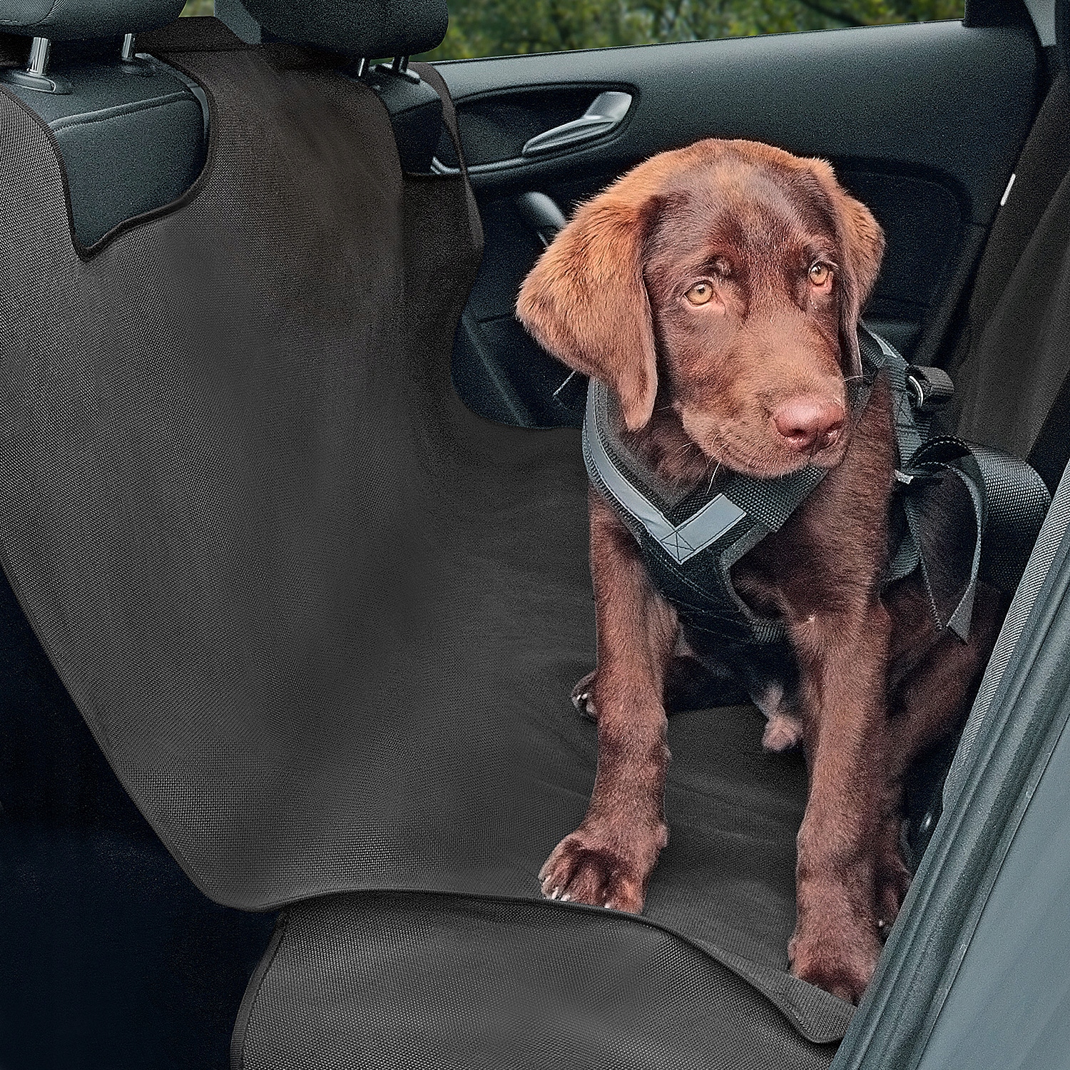 - Защитный чехол Alex для перевозки собаки на заднем сиденье автомобиля с отверстиями, позволяющими прикрепить собаку к сидению. ремни с автомобильным поводком - чехол оснащен длинной прорезью, застегивающейся на молнию с двумя молниями.