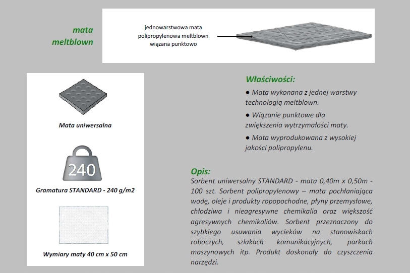 Сорбент универсальный СТАНДАРТ - коврик 0,40м х 0,50м - 25 шт в пакете ПВХ на молнии. Сорбент полипропиленовый - коврик водопоглощающий, масла. и нефтепродукты, промышленные жидкости, охлаждающие жидкости, неагрессивные химикаты и наиболее агрессивные химикаты. Сорбент предназначен для быстрого удаления разливов на рабочих местах, путях сообщения, в машинных парках и т.п. Сорбент в матах также является прекрасной альтернативой обычным протирочным тряпкам. Центральная перфорация позволяет отделить коврик. Коврик изготовлен по технологии MeltBlown.