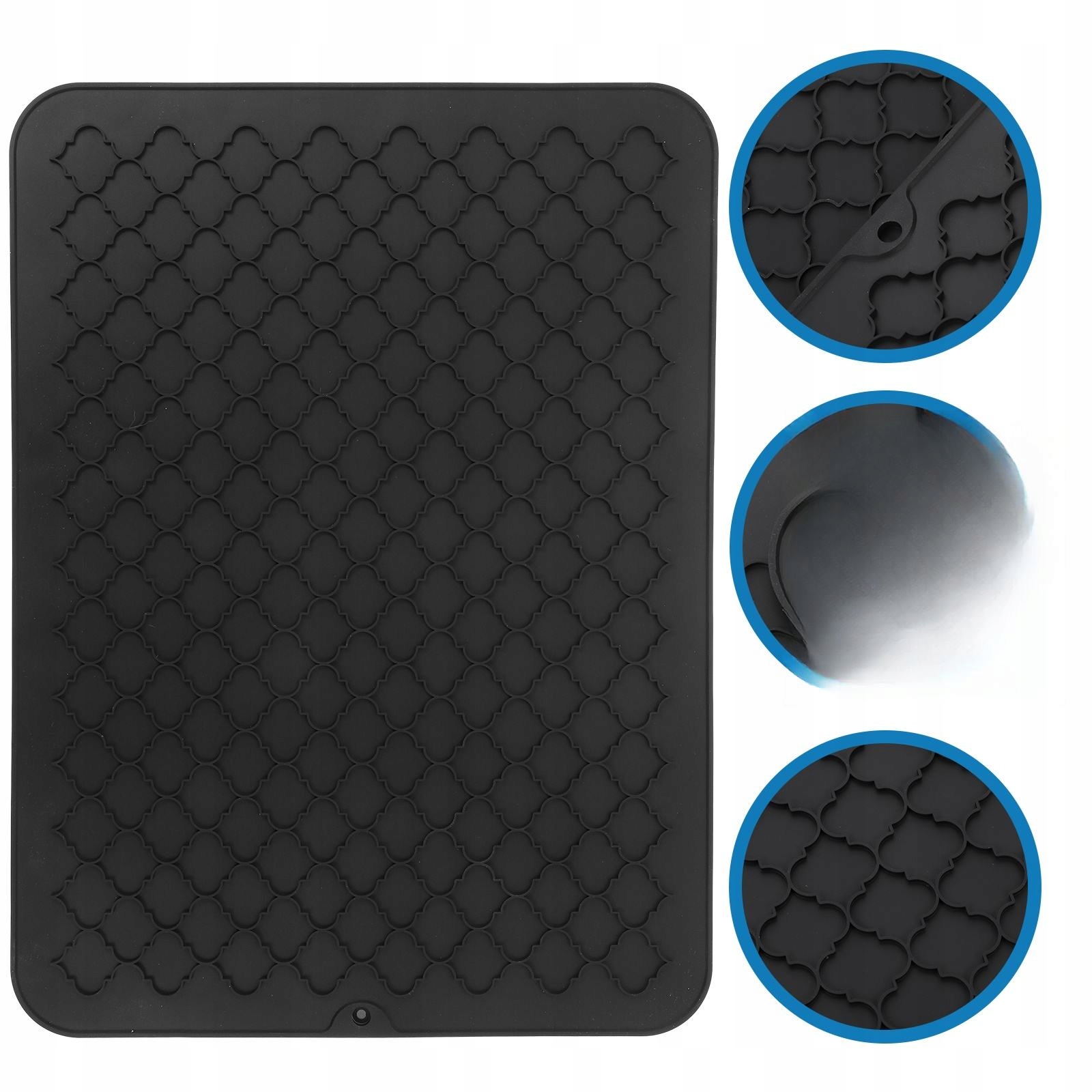 Черный силиконовый коврик для сушки посуды – противоскользящий