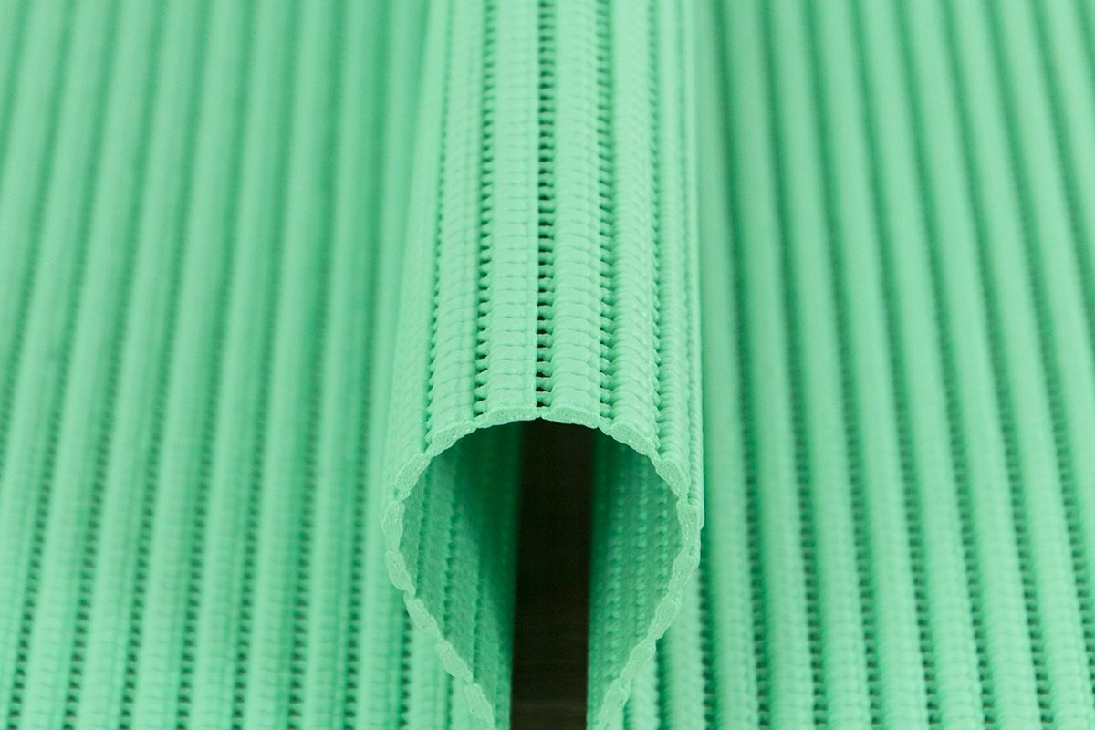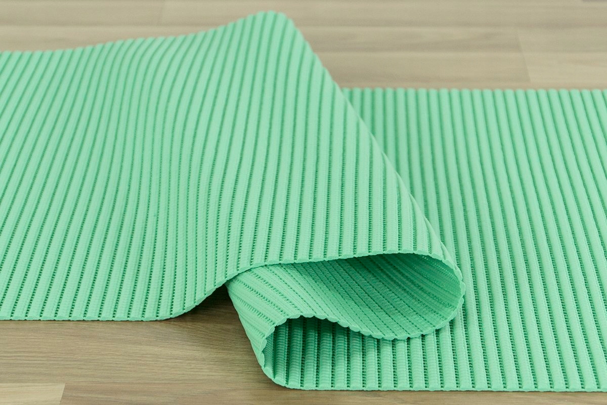 Коврик для ванной выполнен в однородном, энергичном цвете ярко-зеленого цвета. Вся поверхность покрыта тонкими, регулярными бороздками в виде горизонтальных полос, которые повышают функциональность и придают современный, аккуратный вид. Отсутствие дополнительных графических рисунков позволяет изделию вписаться в эстетику минимализма и легко адаптируется к различным интерьерам.
