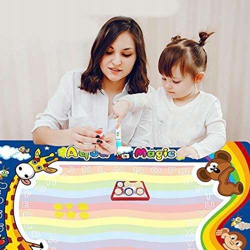 благодаря использованию специальных немаркирующих маркеров на водной основе покраска не связана с риском повреждение коврика, одежды, мебели или помещения. Игра с ковриком совершенно безопасна. Все, что вам нужно, это вода и руки, готовые рисовать.