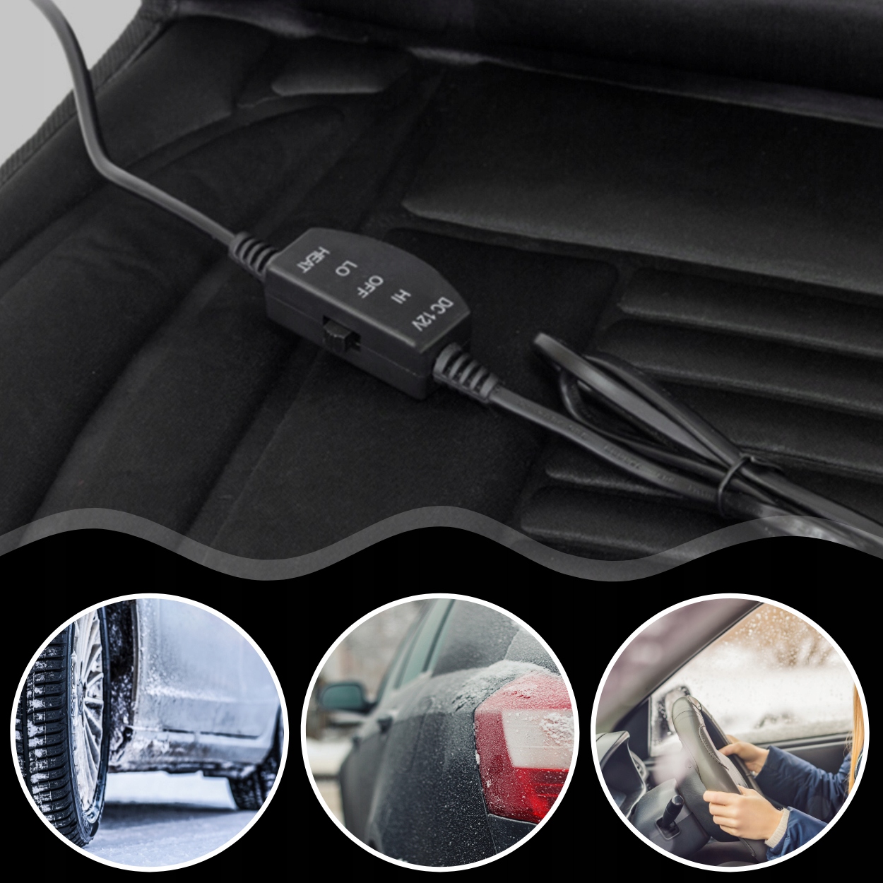 Коврик имеет встроенные крючки, которые обеспечивают надежное крепление к сиденью. Терморегулятор с термопредохранителем предотвращает перегрев, а удобный пульт дистанционного управления позволяет регулировать температуру на двух уровнях нагрева.