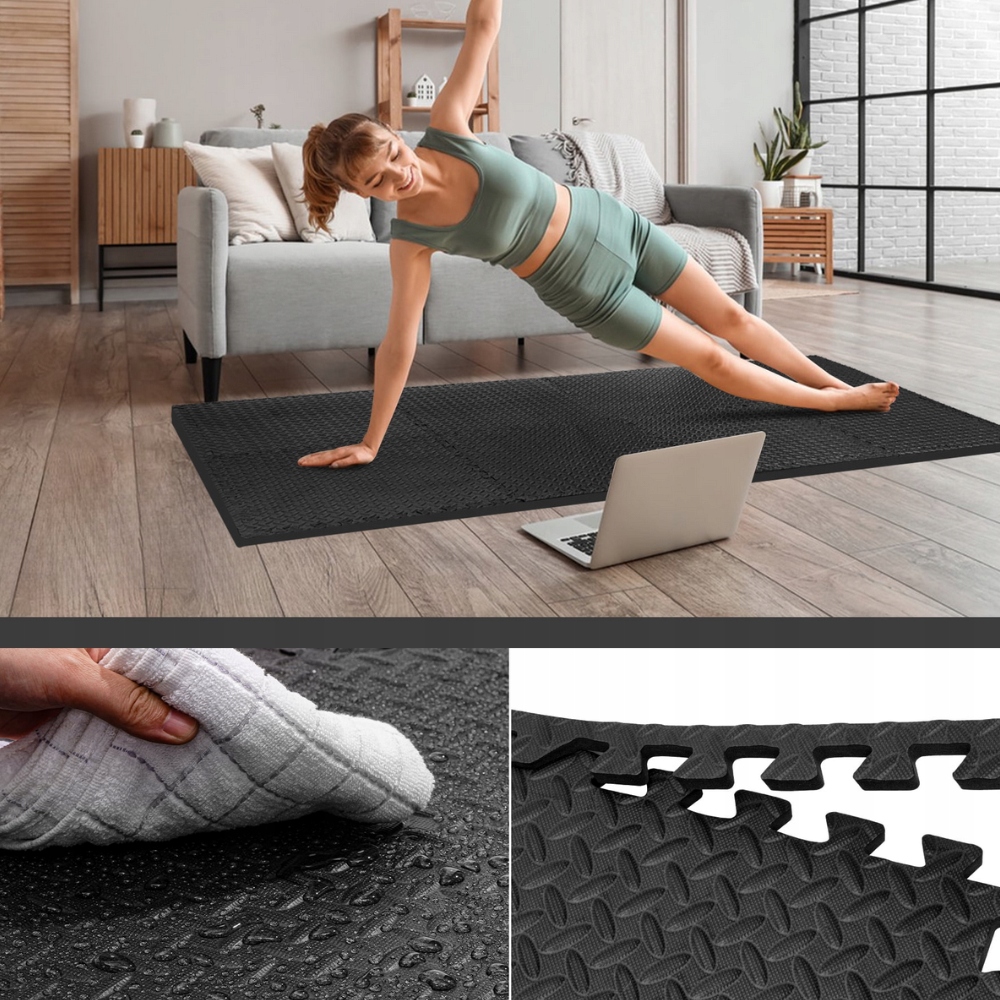 - Модульная структура пазла - Коврик состоит из элементов в виде пазлов, которые можно свободно комбинировать и расширять в зависимости от ваших потребностей. Благодаря этому вы можете легко адаптировать его размер к имеющемуся пространству - от небольшого тренировочного уголка до комнаты большей площади.