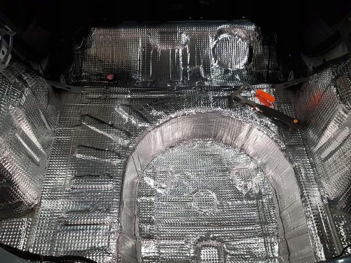 - Багажник с колесными арками: около 3 м2 бутилового мата + 3 м2 пенопласт;