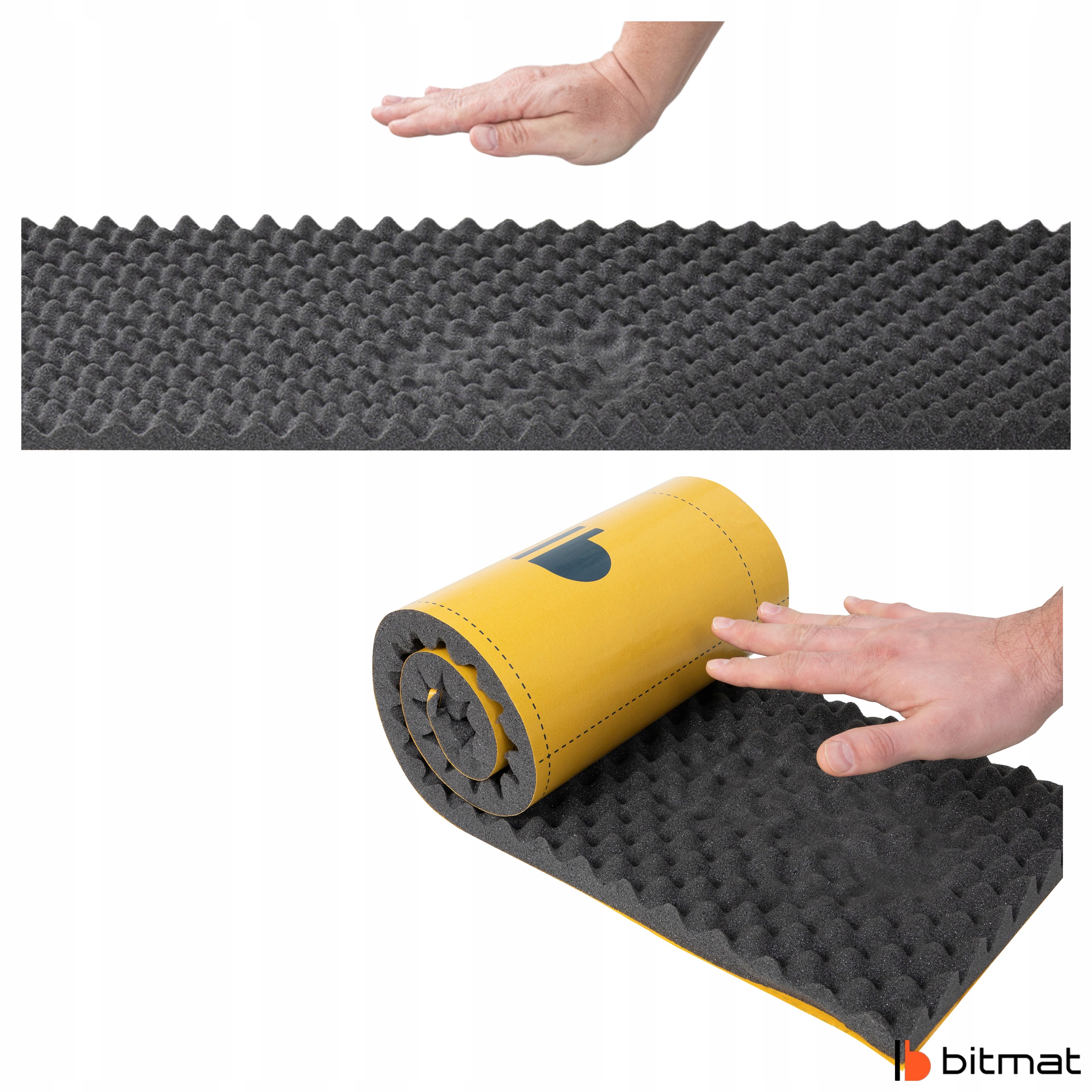 Пенополиуретан самоклеющийся «Битмат» — звукоизоляционный материал, предназначенный для снижения шума, вибраций и потрескиваний внутри автомобиля. Профиль «Волна» увеличивает поверхность звукопоглощения, что повышает эффективность в диапазоне средних и высоких частот. Благодаря эффекту памяти формы поролон медленно возвращает свою форму, тщательно заполняя зазоры между элементами обивки. В результате значительно снижается скрип, стук и резонанс, особенно за дверными панелями, в туннеле, стойках, обшивке потолка и багажнике.