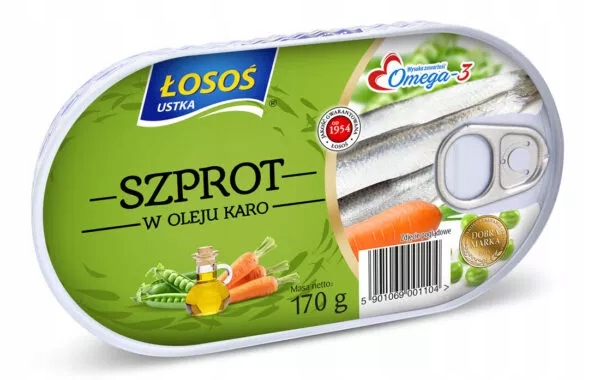 Состав: килька (Sprattus sprattus / район вылова: Балтийское море ФАО 27. III д / выловлено в морской пелагический трал) (55%), масло рапсовое (33% до стерилизации), овощи в различных пропорциях (10%; морковь, горох), соль, ароматизатор перец натуральный, регулятор кислотности: уксусная кислота.